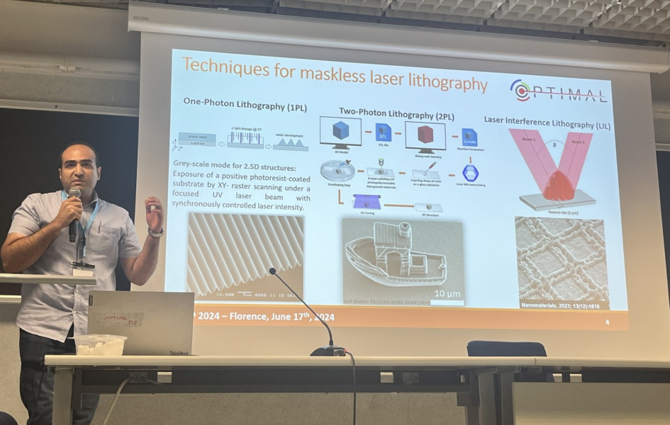 The OPTIMAL project was presented at the ICOP 2024 conference in Florence, Italy on June 17, 2024. The presentation provided an overview of the project’s scope and objectives. It also discussed the evaluation of grayscale laser lithography accuracy using benchmark artifacts currently being applied within WP4. https://www.icop2024.it/ ...